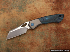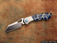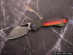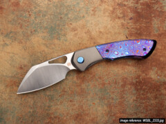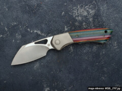 The Whippersnapper was released in November 2019 and by mid-2021 we had completed its first run. At that time the knife was a full titanium framelock with CPM-20CV blade steel. What you're seeing on this page is the start of its second run: the design and size are the same, but there are a few changes. We wanted to go back to our roots of making full custom linerlocks and combine that experience of working with different materials with the ways we learned to make titanium… not look like titanium. The end result is this 'bolsterlock' style which adds a vast range of scale options to the original design (coincidentally we have a stash of materials that goes back to 2013). And in case choosing one wasn't hard enough already, there are now three blade steel options: CTS-XHP, CPM S90V, and Damasteel in the Super Dense Twist pattern.